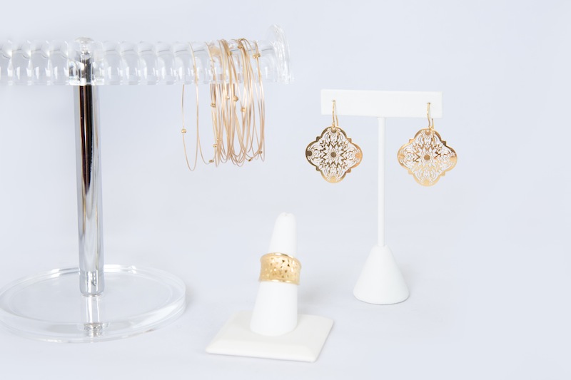 Jewels: “Linda Rocco” wood jewelry cluster, All Gold cluster, or “Nordstrom” chain link rose gold cluster