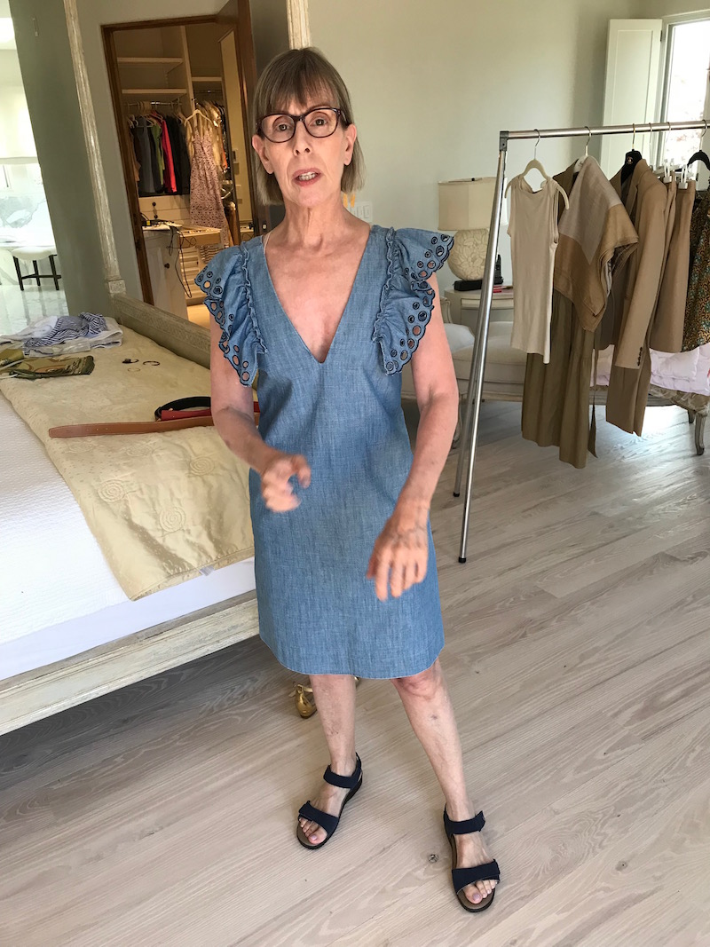 “J.Crew” Denim Deep V-Neck Flutter Sleeve Dress