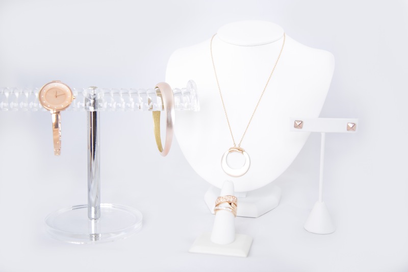Rose Gold “Alexis Bittar” Necklace, “Kate Space” Bangles, Pyramid Stud Earrings, “Michael Kors” Rings, Rose Gold Watch Leave a reply