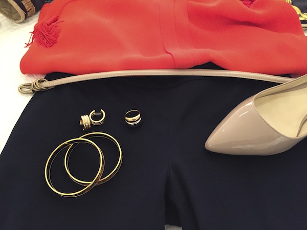 Jewels: Mixed metal gold crystal drop earrings, “Freda Rothman” mixed metal ring