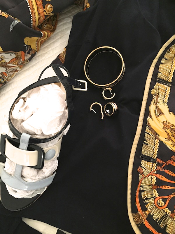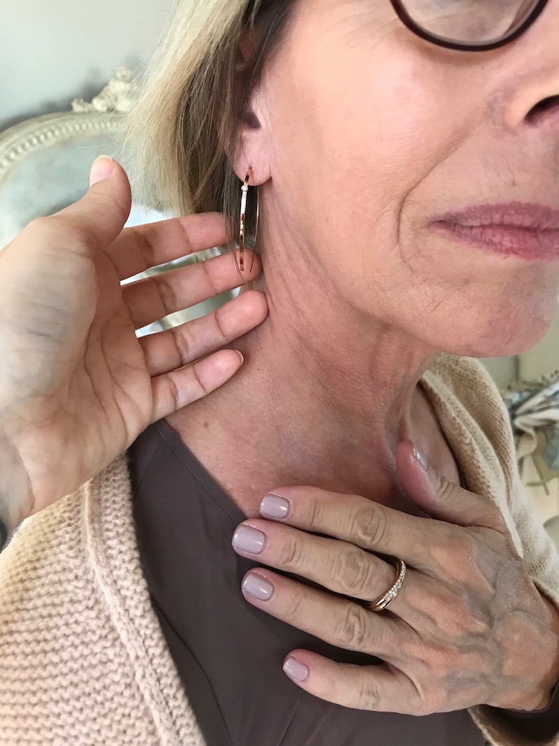 Jewelry: tortoise hoop earrings, tortoise and cream large chain necklace