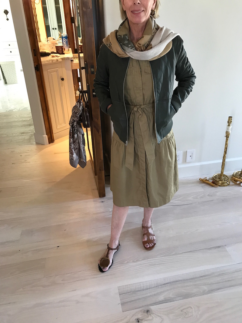 “Worth?” Sage Green Long Sleeve T-Shirt or Green Turtleneck, “Kate Spade” Olive Green Leather Skirt