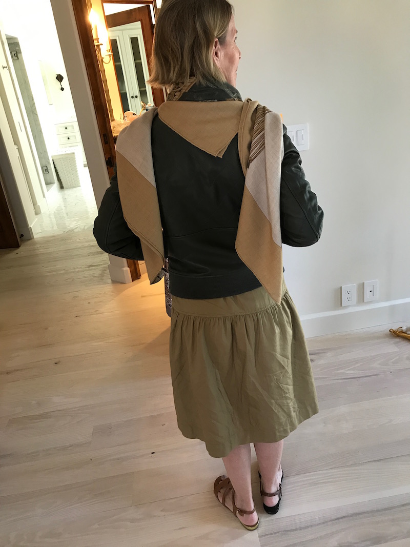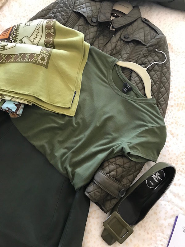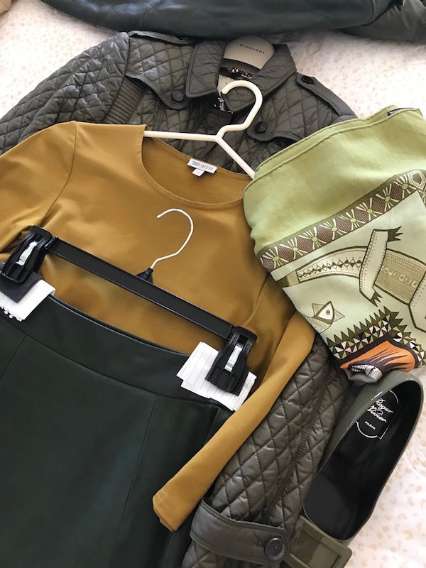 “Worth” Olive Green Shirt, “Kate Spade” Olive Green Leather Skirt