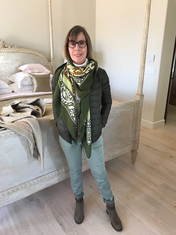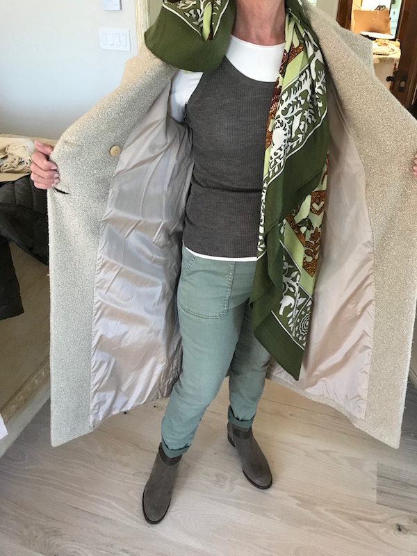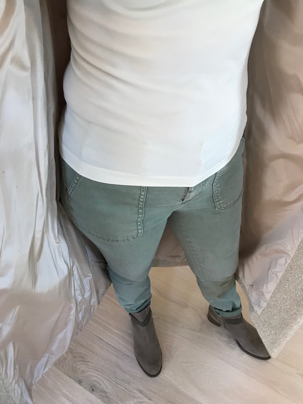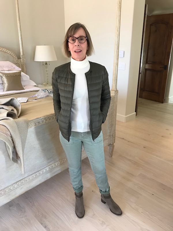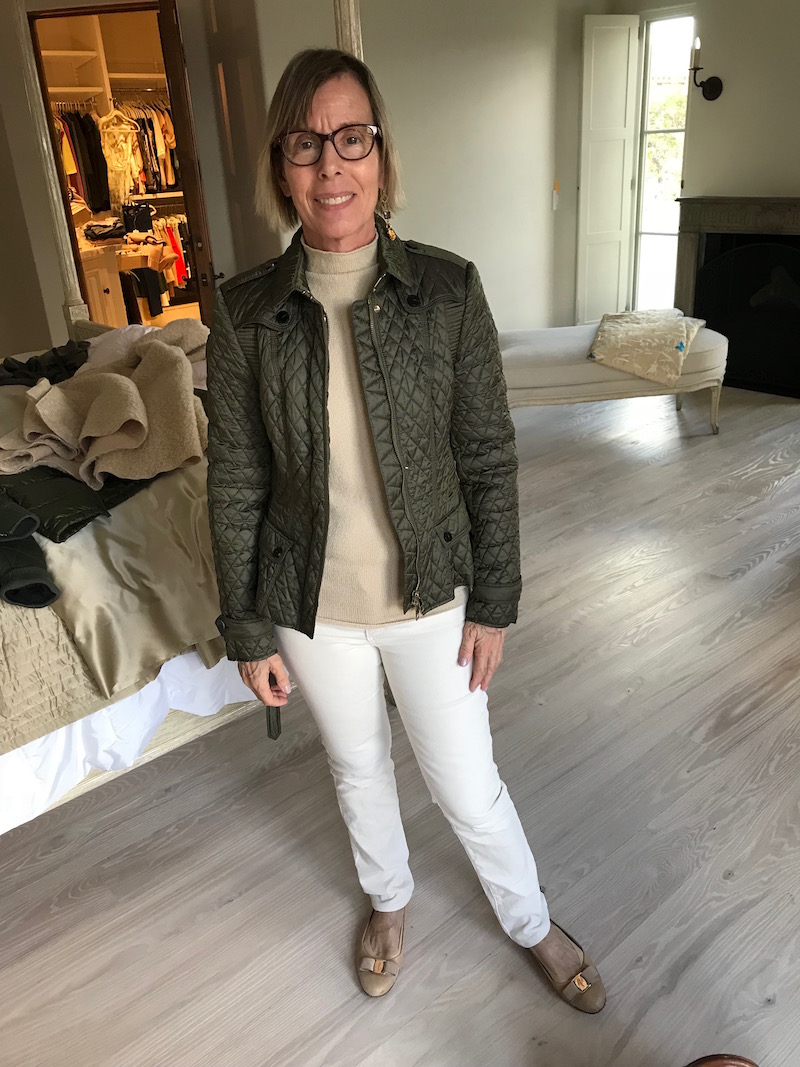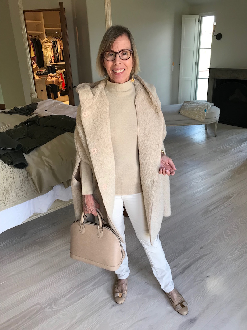 “Rag & Bone” White Sweater with Black Collar , “AG” Off-White Jeans