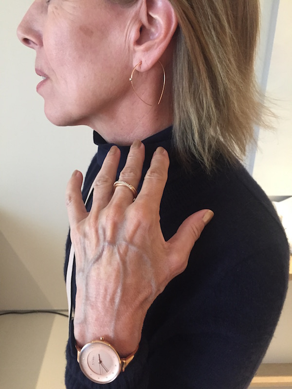 “Worth” Purple 3/4 Sleeve Top, “AG” Light Pink Jeans Leave a reply Jewelry: large rose gold chain necklace, rose gold bangles, rose gold pyramid stud earrings Cover Up: TBD Shoes: “Salvatore Ferragamo” nude gold buckle detail flats