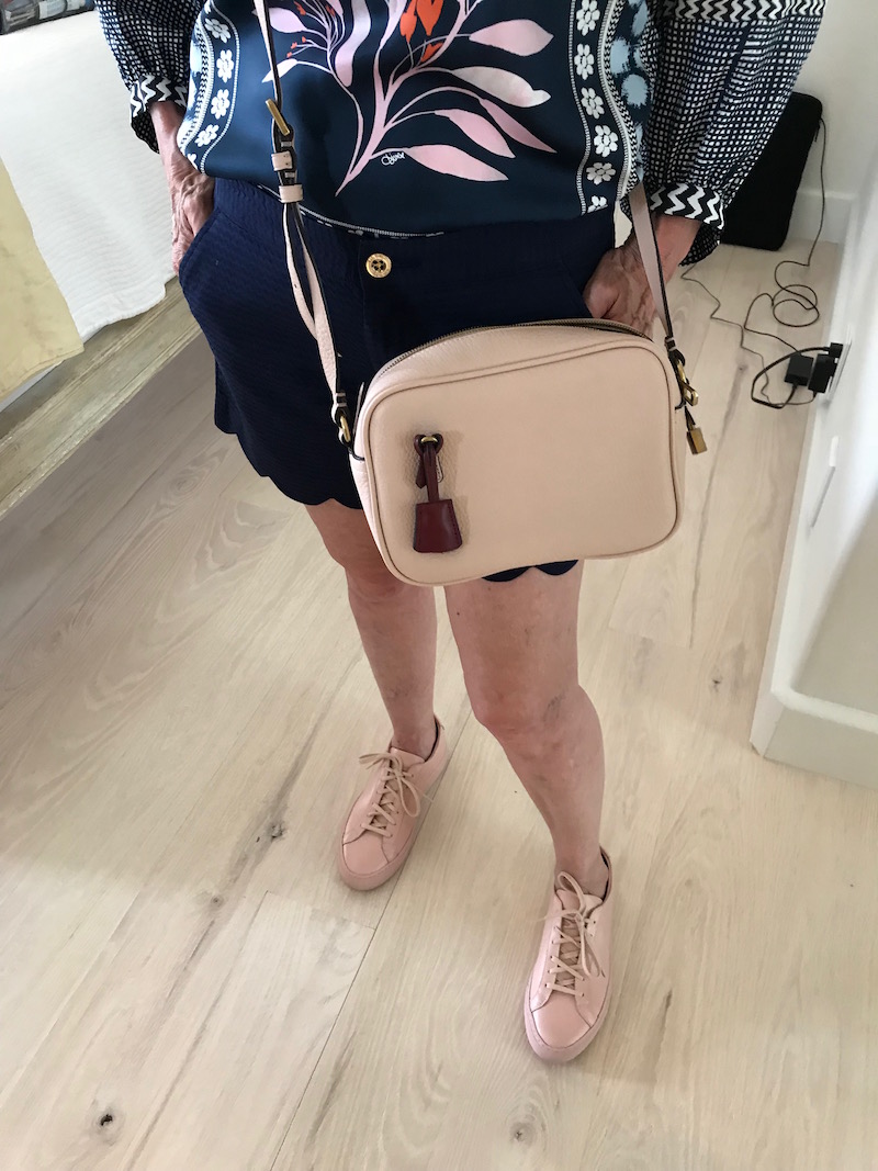 “Joie” Beige Pleated Front Short Sleeve Blouse, “Kate Spade” Mauve Miniskirt