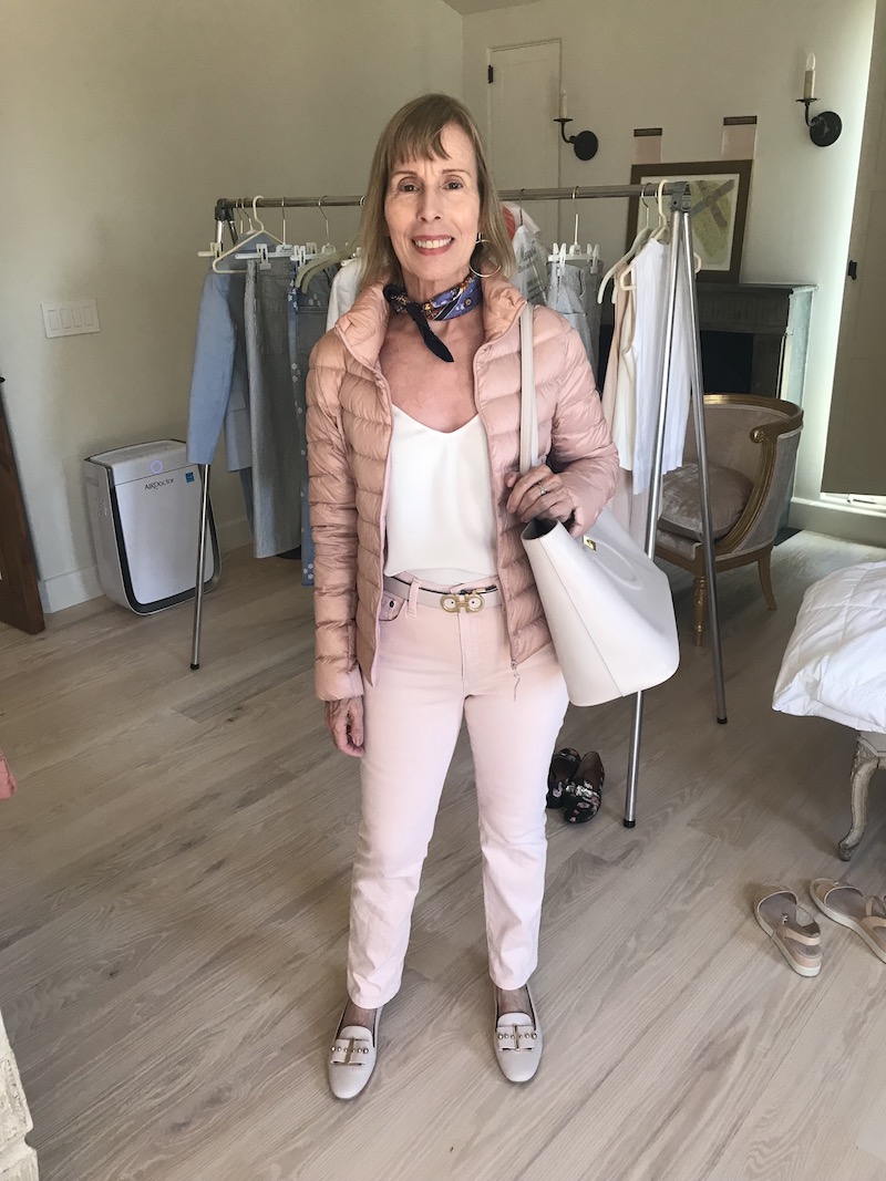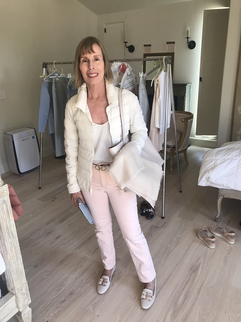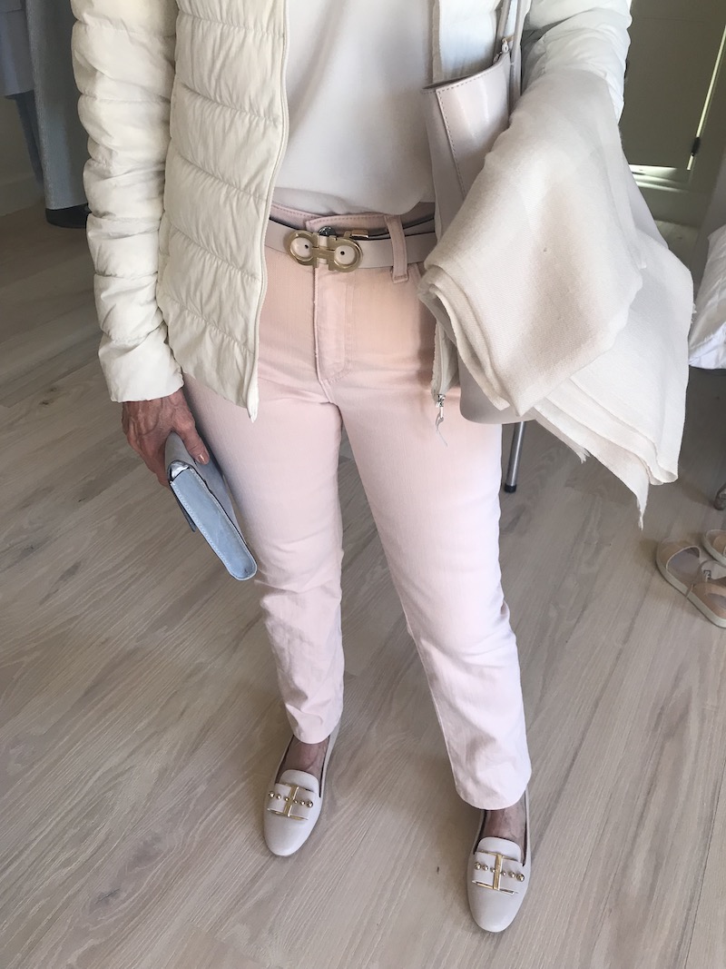 “J.Crew” White Sleeveless Blouse, “?” Light Pink Jeans