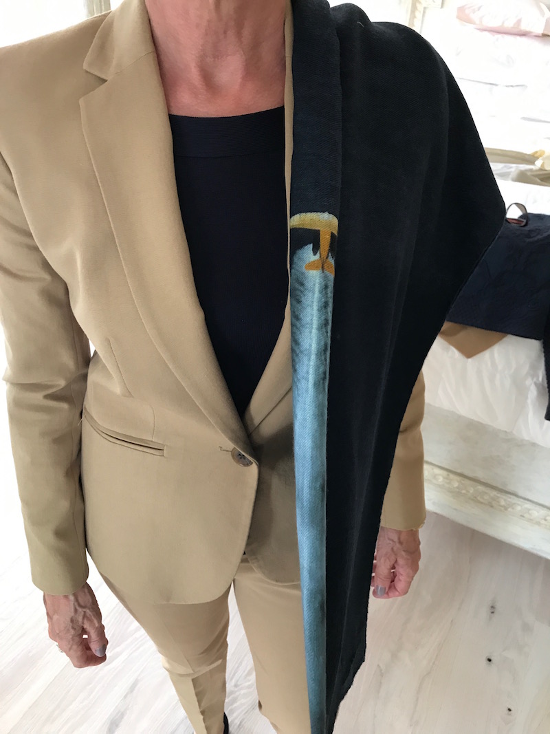Cover-Up: longer cream coat or “Burberry” khaki trench if needed