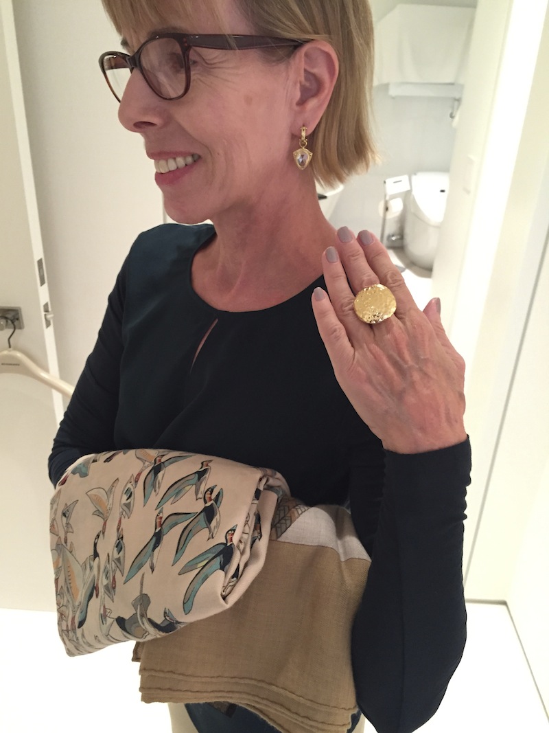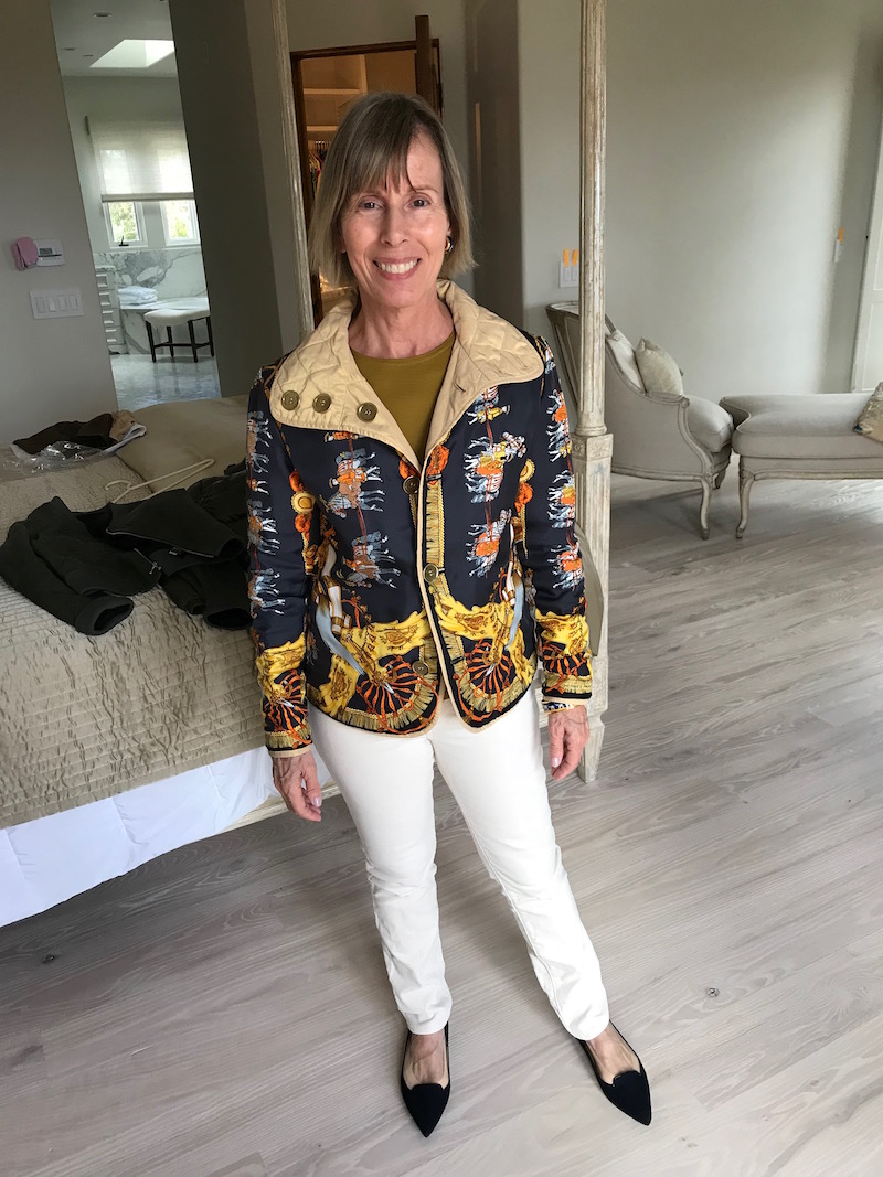 Cover-Up: “Gap” forest green puffer vest, “Hermes” scarf